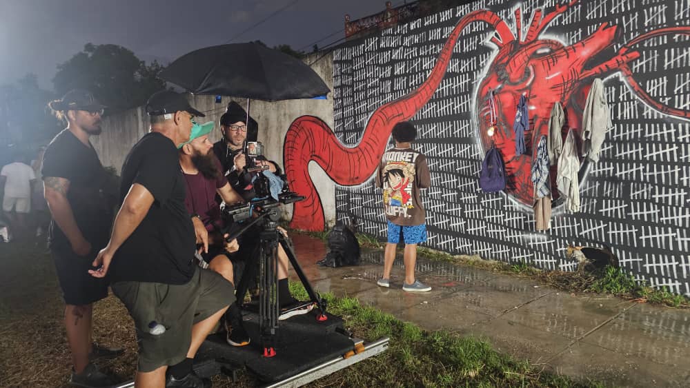 «Para no caer» me invitó a crear y hablar desde otros códigos dentro del video clip, cosa que no había hecho antes. Por ejemplo, confeccionamos un mural con el artista Javier Agudo, del proyecto Arte.92, que refleja, de alguna manera, la vida y el sacrificio de esos muchachos. Utilizamos técnicas de iluminación, puesta en escena, actuación… Considero que en ese sentido es un producto bastante integral. No había logrado algo tan complejo como esto. Me sacó de mi zona de confort y me permitió explorar otras maneras.